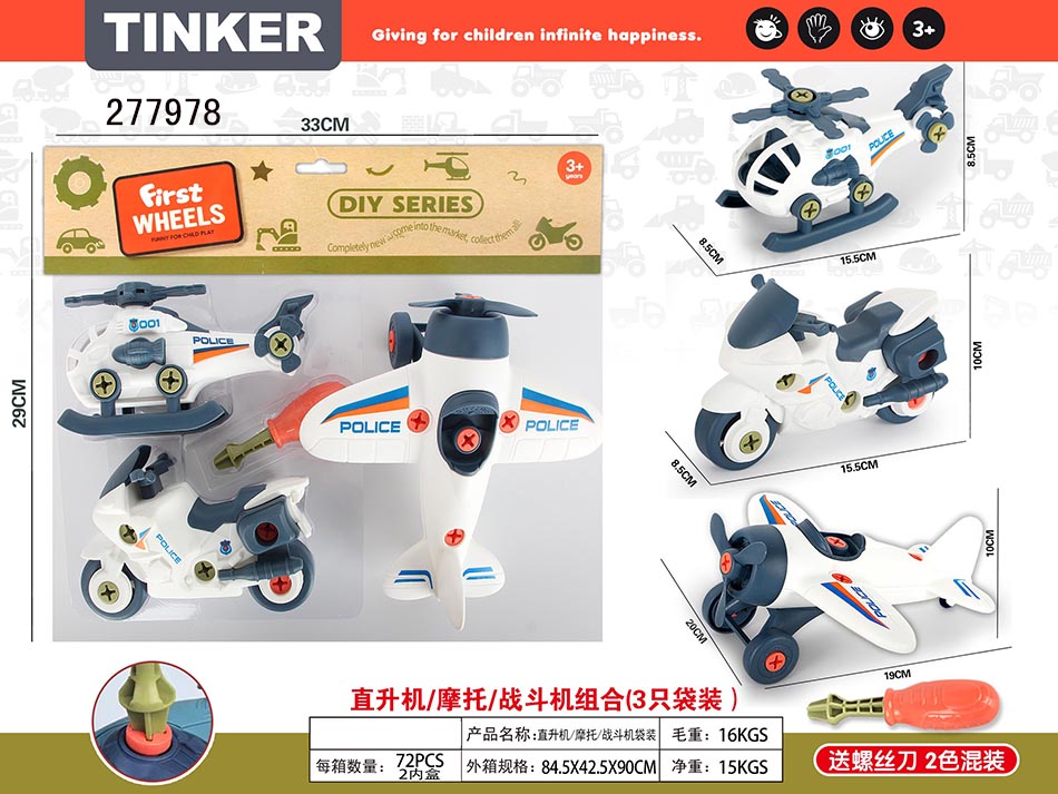 警察袋装3只装DIY儿童玩具益智启蒙仿真模型 |