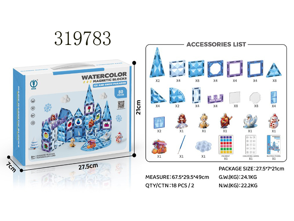 冰雪乐园彩绘钻纹磁力积木 80PCS |